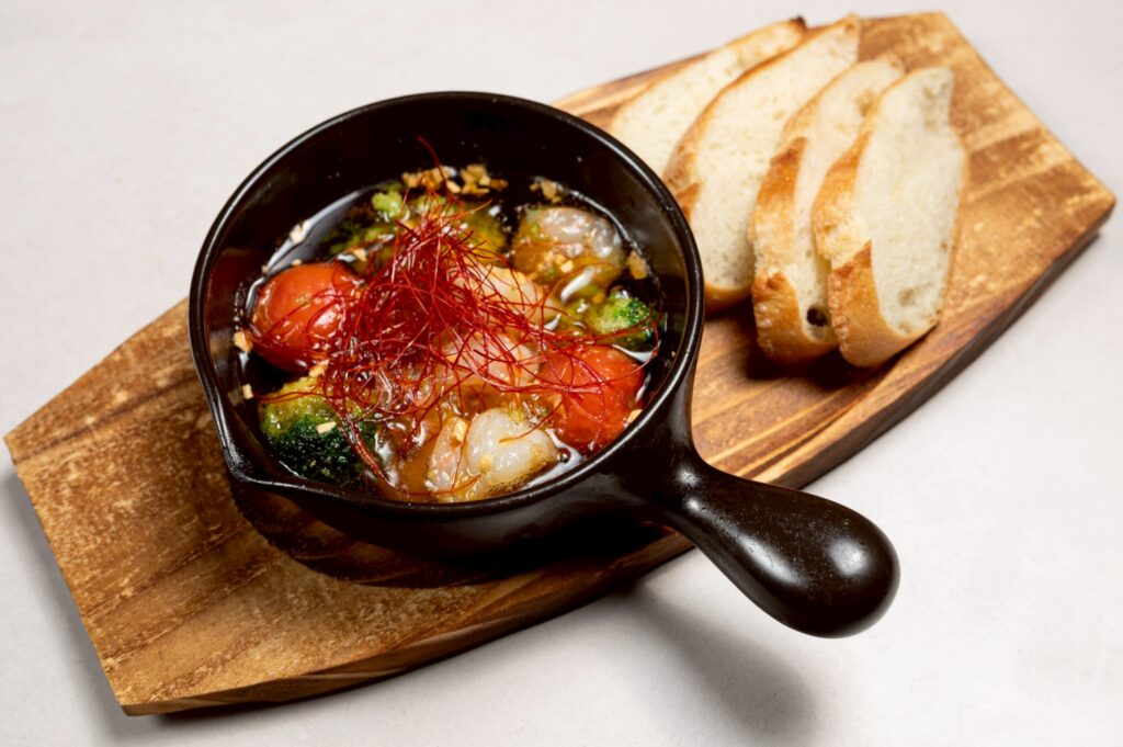 海老と野菜のアヒージョ